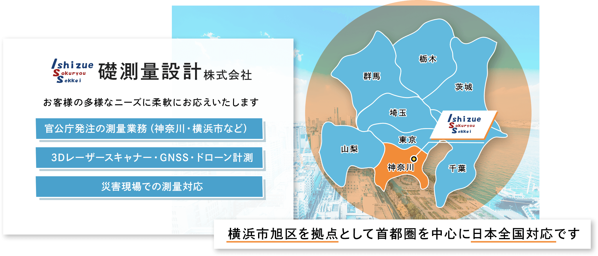 お客様一人ひとりのご要望や課題を丁寧にお伺いし、最適な測量サービスや設計サポートをご提案いたします。横浜市旭区を拠点として首都圏を中心に日本全国対応です。